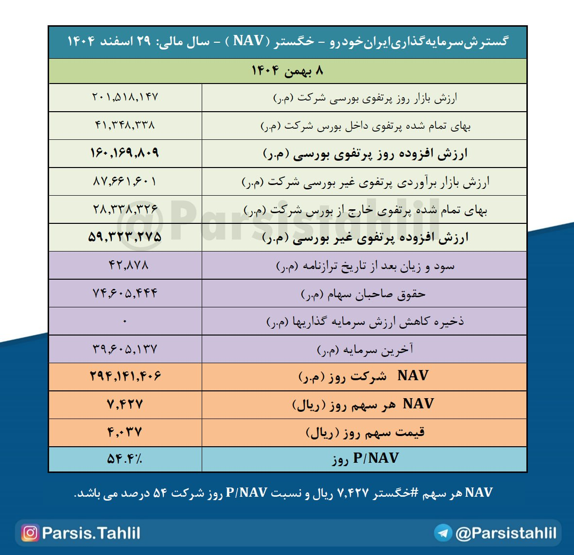 بدین ترتیب NAV هر سهم #خگستر 7,427 ریال و نسبت P/NAV روز شرکت 54 درصد می باشد.