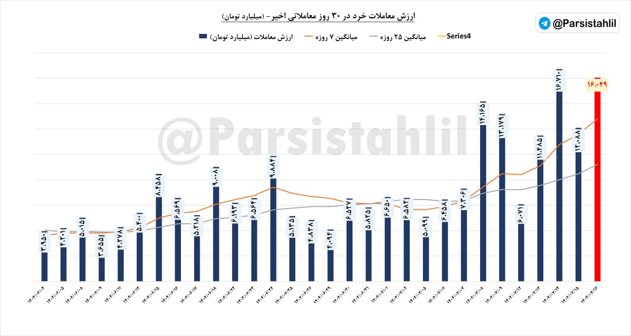ارزش معاملات #خرد (سهام+حق تقدم+صندوق های سهامی) امروز بازار مورخ 16 مهر 1404 مبلغ 16049 میلیارد تومان بود.