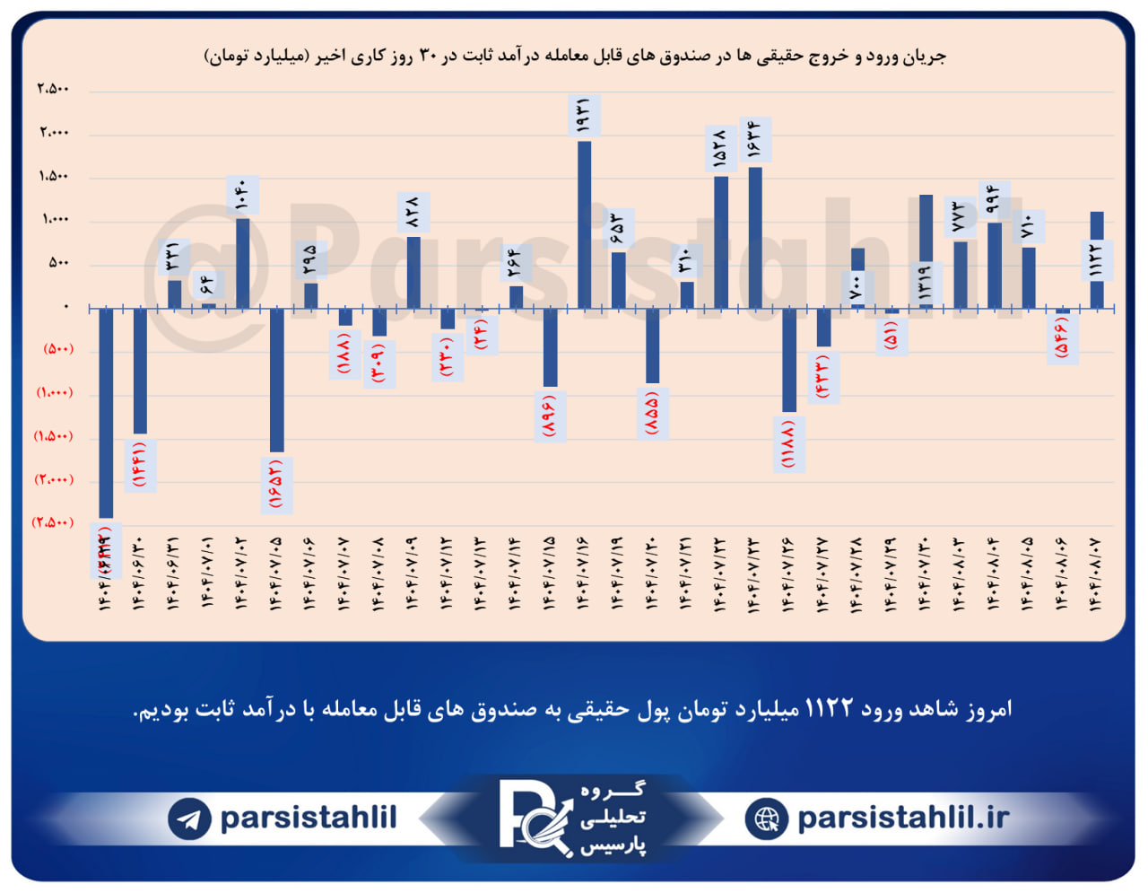 📊 امروز شاهد ورود 1122 میلیارد تومان پول حقیقی به صندوق های قابل معامله با درآمد ثابت بودیم.