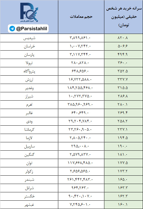 15 نماد با بالاترین سرانه خرید و فروش حقیقی