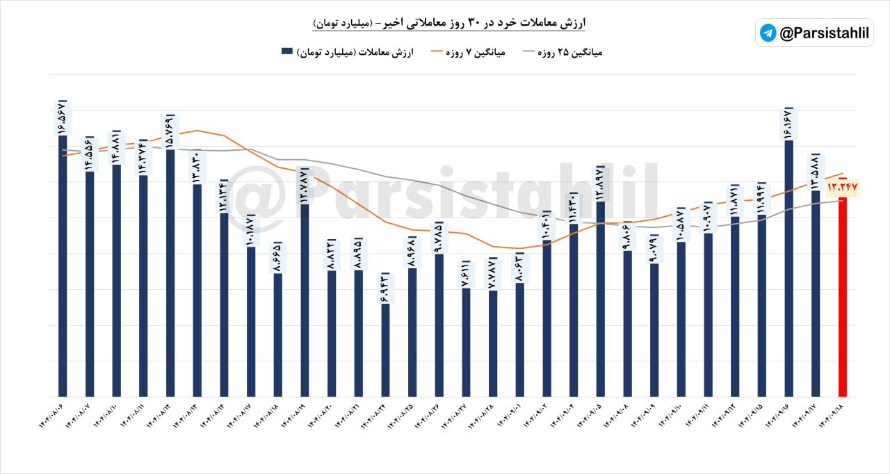 📊ارزش معاملات #خرد (سهام+حق تقدم+صندوق های سهامی) امروز بازار مورخ 18 آذر 1404 مبلغ 12247 میلیارد تومان بود.