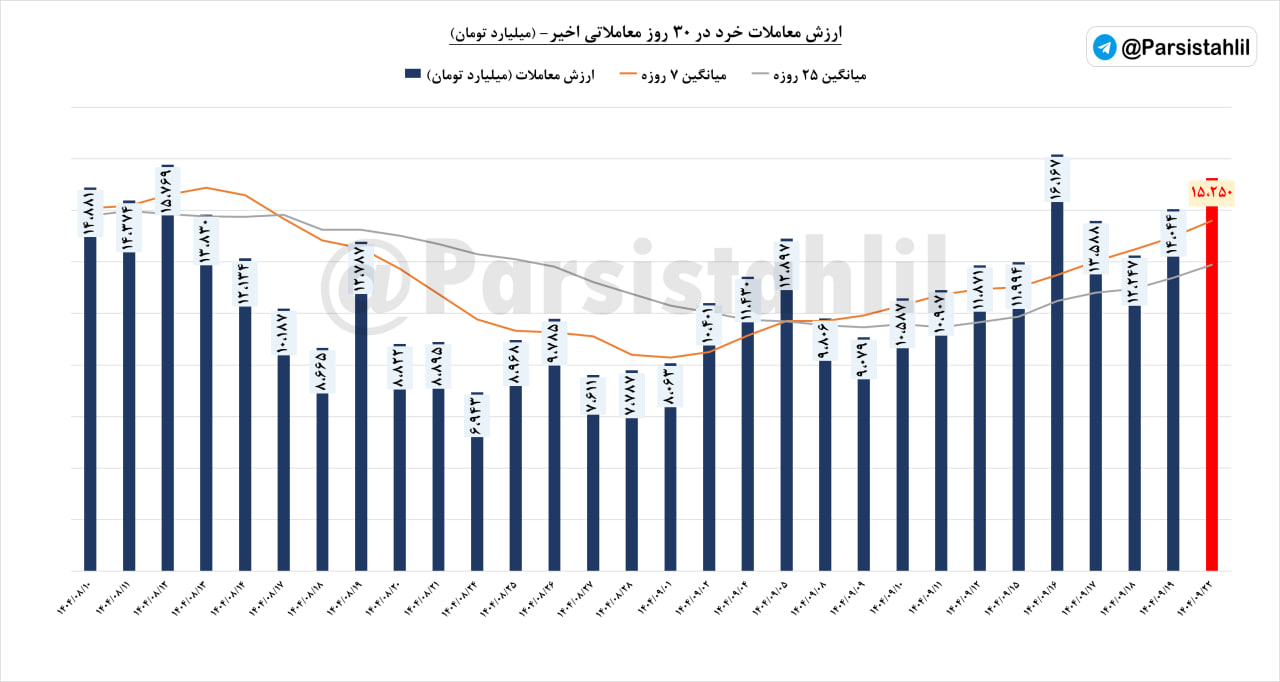 📊ارزش معاملات #خرد (سهام+حق تقدم+صندوق های سهامی) امروز بازار مورخ 22 آذر 1404 مبلغ 15250 میلیارد تومان بود.