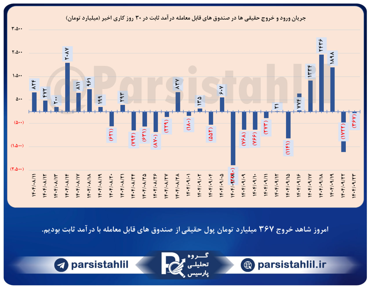 📊 امروز شاهد خروج 367 میلیارد تومان پول حقیقی از صندوق های قابل معامله با درآمد ثابت بودیم.