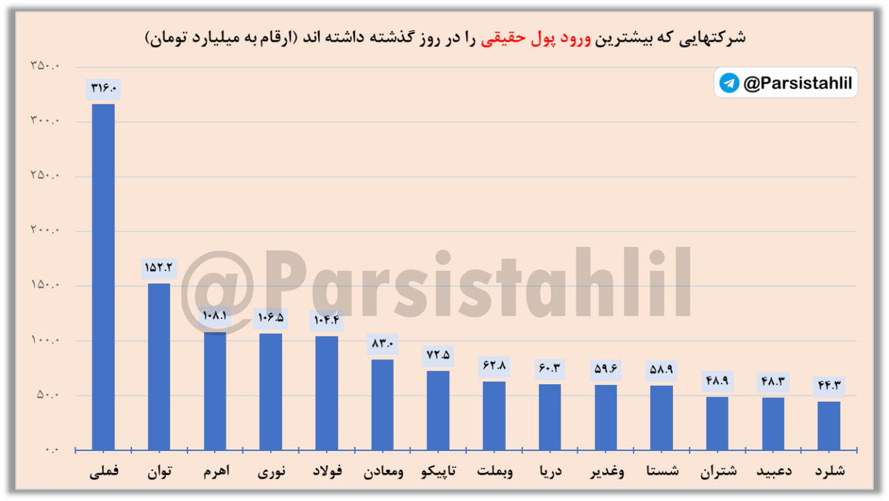 نکته مهم: در بازار امروز شاهد ورود 626 میلیارد تومان نقدینگی حقیقی به نمادهایی با ارزش بازار کمتر از 40 هزار میلیارد تومان و ورود 2042 میلیارد تومان به نمادهای با ارزش بازار بیش از 40 هزار میلیارد تومان بوده ایم.