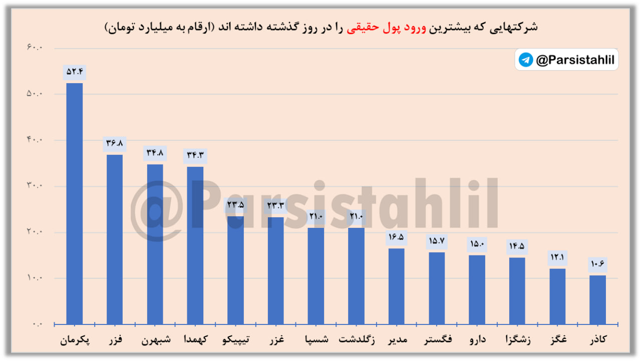 نکته مهم: در بازار امروز شاهد خروج 1928 میلیارد تومان نقدینگی حقیقی از نمادهایی با ارزش بازار کمتر از 40 هزار میلیارد تومان و خروج 5242 میلیارد تومان از نمادهای با ارزش بازار بیش از 40 هزار میلیارد تومان بوده ایم.
