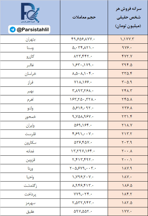 15 نماد با بالاترین سرانه خرید و فروش حقیقی