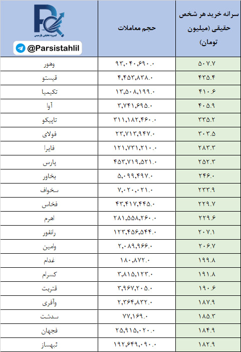 15 نماد با بالاترین سرانه خرید و فروش حقیقی
